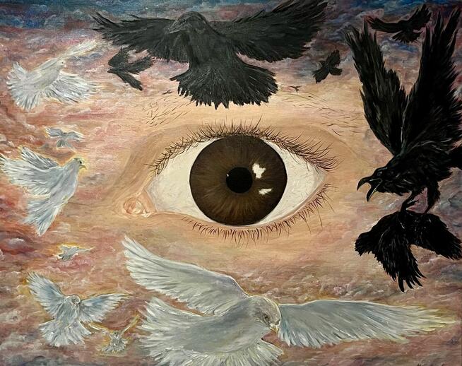 Ten obraz to zaproszenie do zatrzymania się na chwilę — do spojrzenia w głąb siebie. Centralne oko spogląda w ciszy, ...
